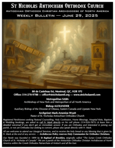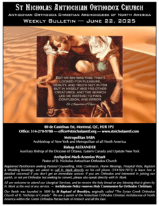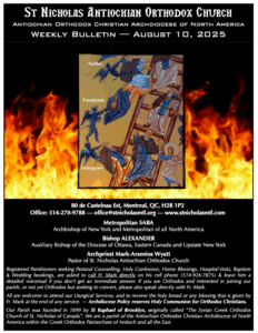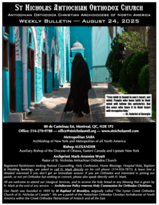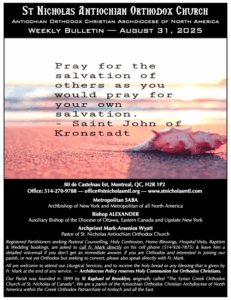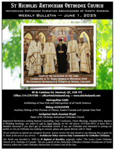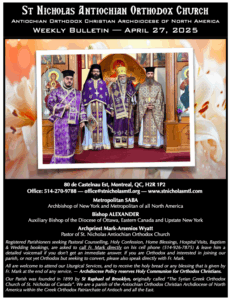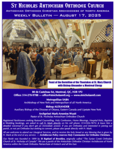 Weekly Newsletter Sep 21, 2025 Click here to open the Newsletter:Newsletter for Sep 21 – Sunday after Holy Cross Weekly Newsletter Sep 14, 2025 Click here to open the Newsletter:Newsletter for Sep 14 – Sunday of the Elevation of the Venerable and Life-Giving Cross Weekly Newsletter Sep 7, 2025 Click here to open the Newsletter:Newsletter for Sep 7 – Sunday before Holy Cross Weekly Newsletter Aug 31, 2025 Click here to open the Newsletter:Newsletter for Aug 31 – 12th Sunday of Matthew Weekly Newsletter Aug 24, 2025 Click here to open the Newsletter:Newsletter for Aug 24 – 11th Sunday of Matthew Weekly Newsletter Aug 17, 2025 Click here to open the Newsletter:Newsletter for Aug 17 – 10th Sunday of Matthew Weekly Newsletter Aug 10, 2025 Click here to open the Newsletter:Newsletter for Aug 10 – 9th Sunday of Matthew Weekly Newsletter Aug 3, 2025 Click here to open the Newsletter:Newsletter for Aug 3 – 8th Sunday of Matthew Weekly Newsletter July 27, 2025 Click here to open the Newsletter:Newsletter for July 27 — 7th Sunday of Matthew Weekly Newsletter July 20, 2025 Click here to open the Newsletter:Newsletter for July 20 — 6th Sunday of Matthew Weekly Newsletter July 13, 2025 Click here to open the Newsletter:Newsletter for July 13 — Sunday of the Holy Fathers of the 4th Ecumenical Council Weekly Newsletter July 6, 2025 Click here to open the Newsletter:Newsletter for July 6 — 4th Sunday of Matthew Weekly Newsletter June 29, 2025 Click here to open the Newsletter:Newsletter for June 29 — Sunday of Saints Peter and Paul the Holy Apostles Weekly Newsletter June 22, 2025 Click here to open the Newsletter:Newsletter for June 22 — Sunday of all Saints of Antioch; Second Sunday of Matthew Weekly Newsletter June 15, 2025 Click here to open the Newsletter:Newsletter – June 15 Weekly Newsletter June 8, 2025 Click here to open the Newsletter:Newsletter – June 8 Weekly Newsletter June 1, 2025 Click here to open the Newsletter:Newsletter – June 1 Weekly Newsletter May 25, 2025 Click here to open the Newsletter:Newsletter – May 25 Weekly Newsletter May 18, 2025 Click here to open the Newsletter:Newsletter – May 18 Weekly Newsletter May 11, 2025 Click here to open the Newsletter:Newsletter – May 11 Weekly Newsletter May 4, 2025 Click here to open the Newsletter:Newsletter – May 4 Weekly Newsletter April 27, 2025 Click here to open the Newsletter:Newsletter – April 27 Weekly Newsletter April 20, 2025 Click here to open the Newsletter:Newsletter – April 20 Weekly Newsletter April 13, 2025 Click here to open the Newsletter:Newsletter – April 13 Weekly Newsletter April 6, 2025 Click here to open the Newsletter:Newsletter – April 6 Weekly Newsletter Mar 30, 2025 Click here to open the Newsletter:Newsletter – Mar 30 Weekly Newsletter Mar 23, 2025 Click here to open the Newsletter:Newsletter – Mar 23 Weekly Newsletter Mar 16, 2025 Click here to open the Newsletter:Newsletter – Mar 16 Weekly Newsletter Mar 9, 2025 Click here to open the Newsletter:Newsletter – Mar 9 Weekly Newsletter Mar 2, 2025 Click here to open the Newsletter:Newsletter – Mar 2 Weekly Newsletter Feb 23, 2025 Click here to open the Newsletter:Newsletter – Feb 23 Weekly Newsletter Feb 16, 2025 Click here to open the Newsletter:Newsletter – Feb 16 Weekly Newsletter Feb 9, 2025 Click here to open the Newsletter:Newsletter – Feb 9 Weekly Newsletter Feb 2, 2025 Click here to open the Newsletter:Newsletter – Feb 2 Weekly Newsletter Jan 26, 2025 Click here to open the Newsletter:Newsletter – Jan 26 Weekly Newsletter Jan 19, 2025 Click here to open the Newsletter:Newsletter – Jan 19 Weekly Newsletter Jan 12, 2025 Click here to open the Newsletter:Newsletter – Jan 12 Weekly Newsletter Jan 5, 2025 Click here to open the Newsletter:Newsletter – Jan 5 Weekly Newsletter Dec 29 Click here to open the Newsletter:Newsletter – Dec 29 Weekly Newsletter Dec 22 Click here to open the Newsletter:Newsletter – Dec 22 Weekly Newsletter Dec 15 Click here to open the Newsletter:Newsletter – Dec 15 Weekly Newsletter Dec 8 Click here to open the Newsletter:Newsletter – Dec 8 Weekly Newsletter Dec 1 Click here to open the Newsletter:Newsletter – Dec 1 Weekly Newsletter Nov 24 Click here to open the Newsletter:Newsletter – Nov 24 Weekly Newsletter Nov 17 Click here to open the Newsletter:Newsletter – Nov 17 Weekly Newsletter Nov 10 Click here to open the Newsletter:Newsletter – Nov 10 Weekly Newsletter Nov 3 Click here to open the Newsletter:Newsletter – Nov 3